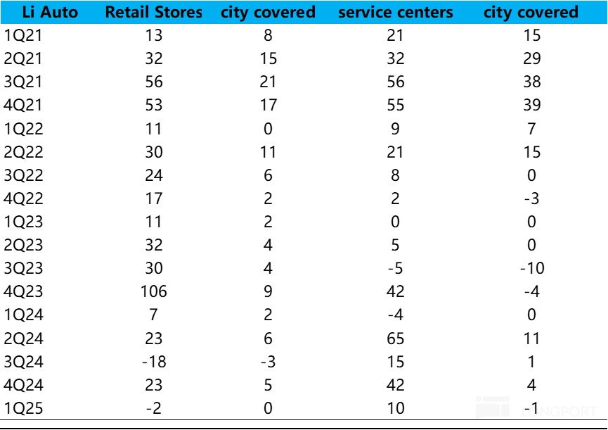 而在渠道建设上,理想四季度在继续做渠道拓展,门店数量和服务中心数量都在继续加快,但覆盖城市方面似乎渠道下沉的不够快(四季度仅新覆盖了 4 个城市),而 L6 车型的较低定价导致的核心用户可能在二三线城市的比例较高。