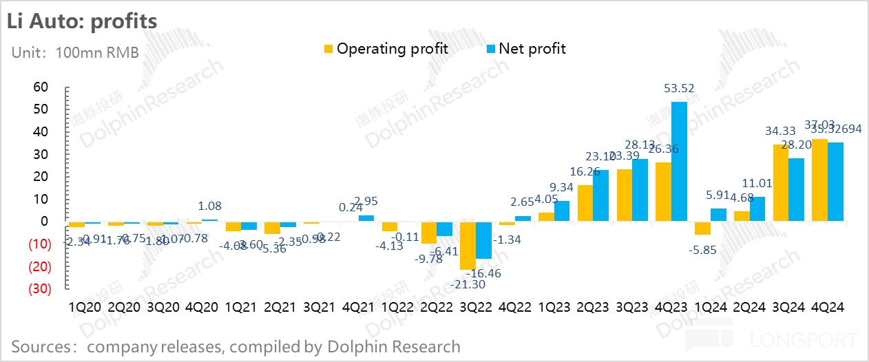 ① 理想计提了一笔购买承诺损失,海豚君预计是由于高估了四季度的交付量导致的,但具体金额尚未在财报中公布。