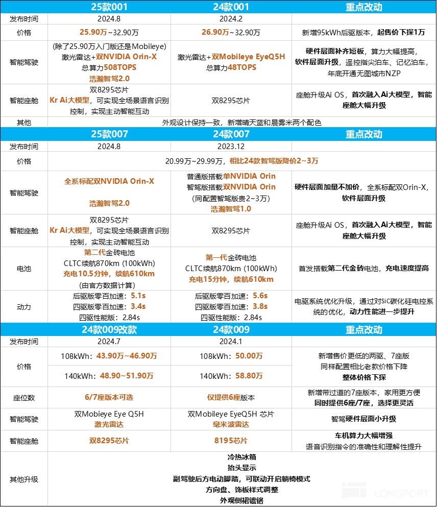 四季度,虽然 24 款 001/007/009 开始上市交付,并且是完整的交付季,虽然是极氪中期改款的产品,改款力度大,在电机功率,智驾硬件,及 800V 高压平台快充上都做了升级,且相比 24 款继续降价,但仍然受到了来自竞品小米 SU7 的冲击。