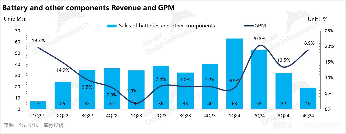 但本季度电池及组件业务毛利率达到了 18.9%,相比上季度 13.5% 环比上行了 5.5%,但季度波动较大,且是吉利体内业务。
