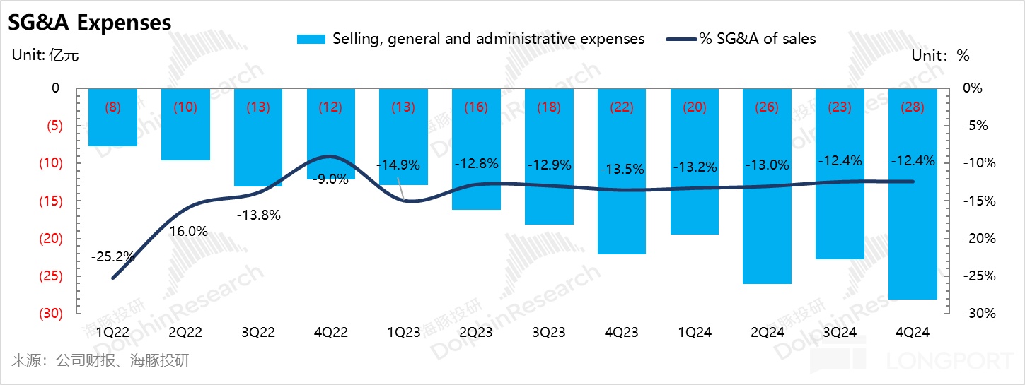 ② 销售和行政费用本季度 28 亿,环比增长 5.5 亿