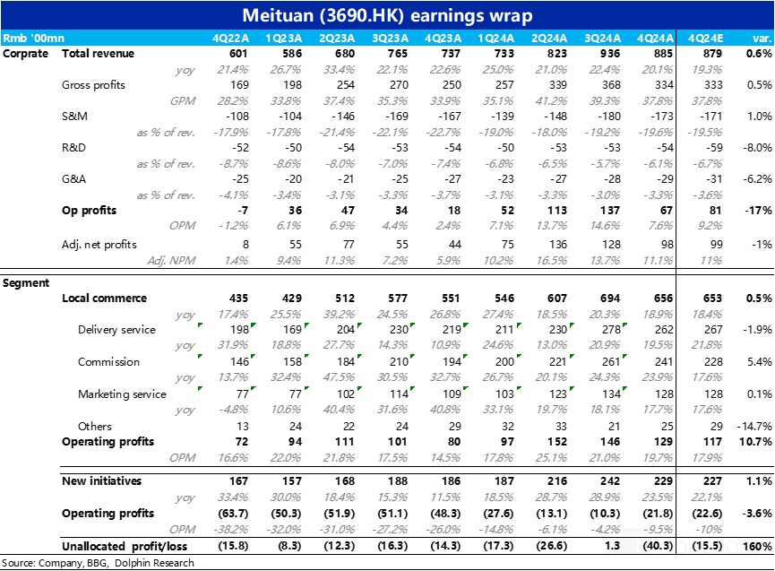以下是$美团-W(03690.HK) FY24 Q4 的财报电话会纪要,财报解读请移步《美团:大战刚消停,却又要折腾 “第二曲线” 了?》