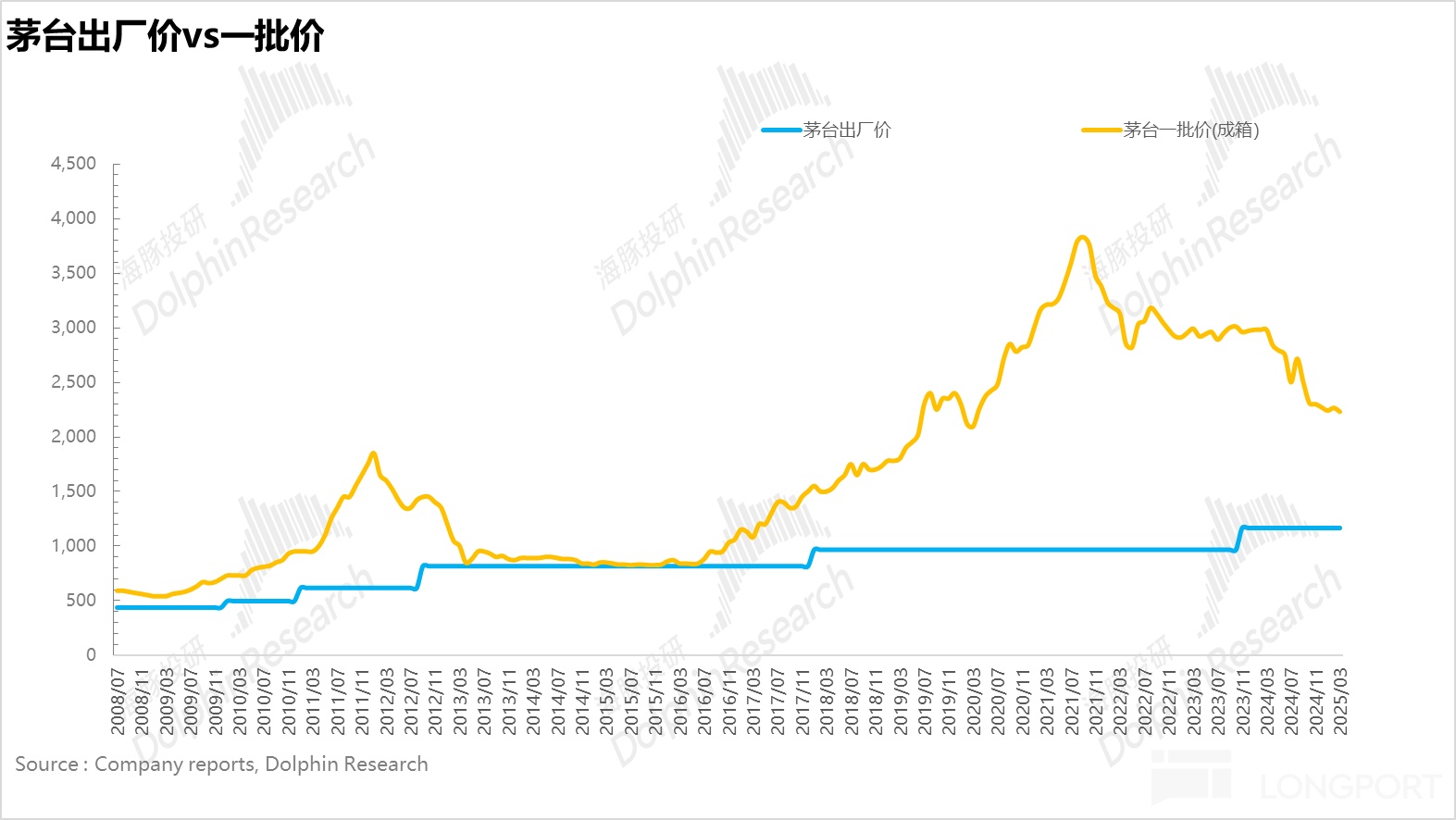 看完 2024 年的年报,海豚君的直观感受是在白酒行业的下行期,老大哥 “茅台” 的日子其实也不是很好过,但硬是凭借在行业里的绝对龙头地位通过大杀器——直接提出厂价 + 老酒小幅放量勉强扛住了下行期的压力测试,达成了全年目标。