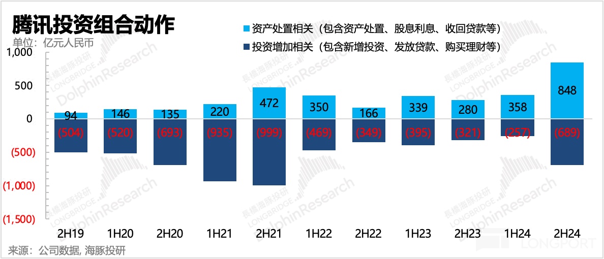 但这毕竟也是一个渠道。尤其去年开始,千亿回购的压力下,对投资组合的“自给自足”提高了要求,即不会额外动用主营的经营现金来增加追加投资标的。从2024年的执行情况来看,腾讯投资部门甚至“超额完成目标”——资产处置规模大于增加的投资。