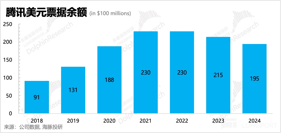 截至2024年末,腾讯发行在外未到期的美元票据本金余额为195亿美元。