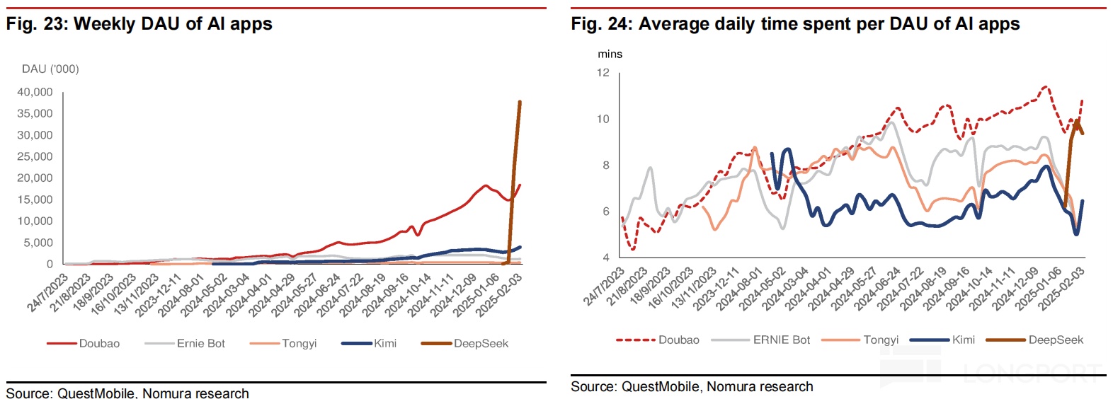 (2)资本门槛可能并未降低。已有入口的大厂同样有这样的防守需求,也会更加主动的去加速推动用户渗透,甚至更准确是抢用户的过程。而一款超级Agent,随着用户粘性的升高,推断调用量会同步指数级增加。
