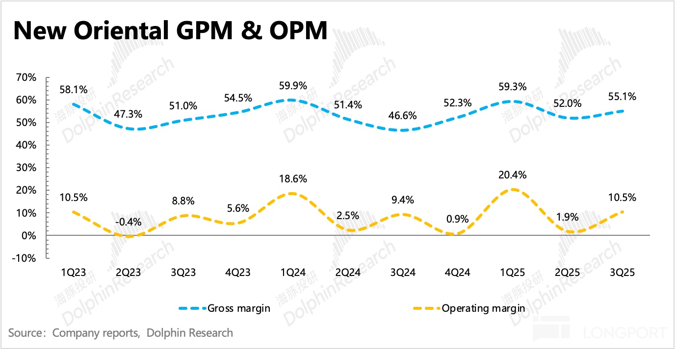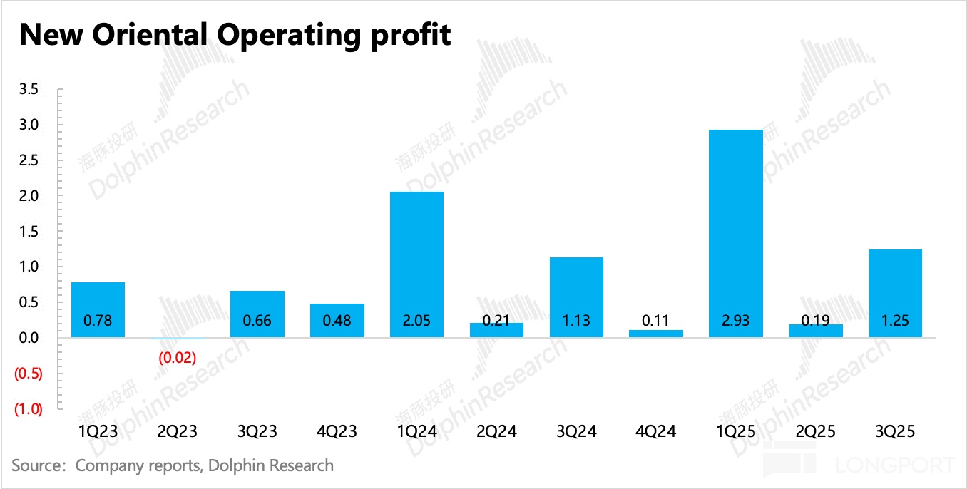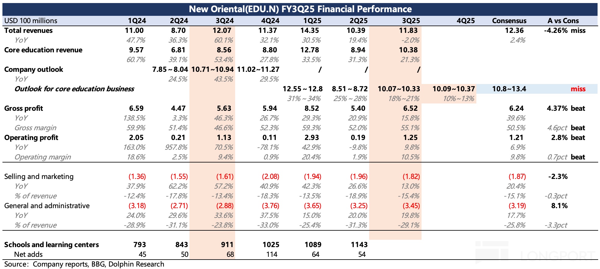 $新东方(EDU.US) 北京时间 4 月 23 日美股盘前发布了 2025 财年第三季度的业绩,对应的是 2024 年 12 月至 2025 年 2 月寒假旺季的经营情况。
