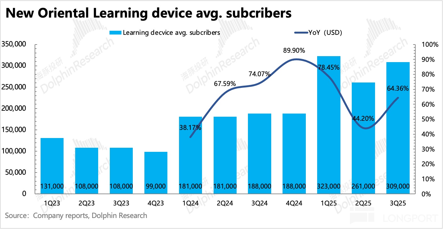 以非学科、学习机为主的新业务增长 35%,去年基数较高(寒假较早),相比上季度有一个自然放缓。