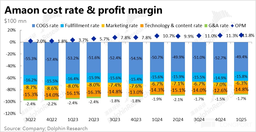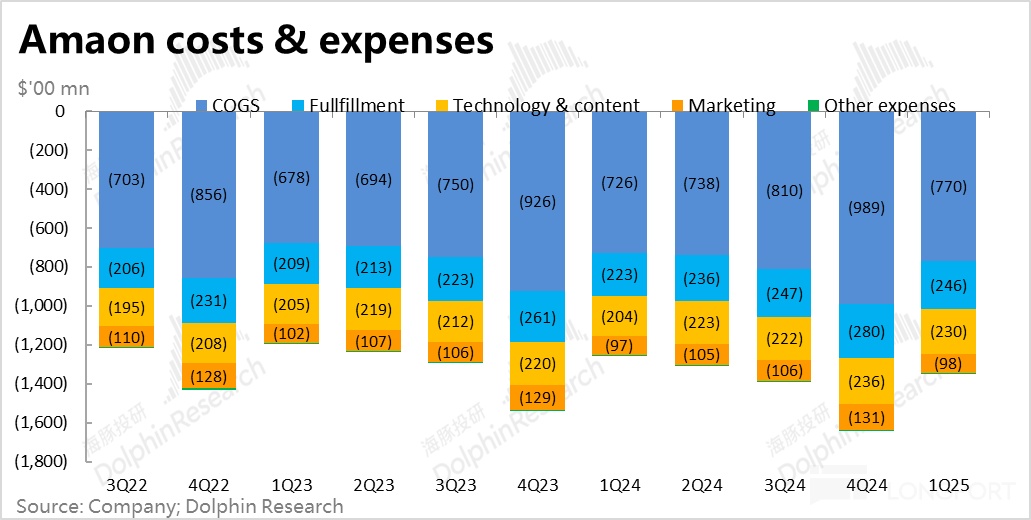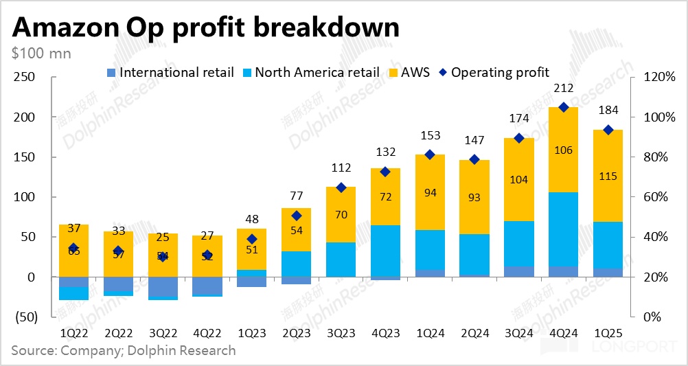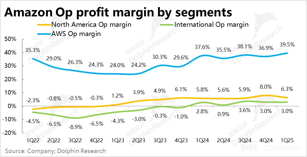 因此展望后续,随着关税冲击的影响在 2Q 正式体现,零售业务后续中短期的利润率确实可能会继续收窄,需要关注此次利润率超预期走高的 AWS 业务能否保持,支撑起集团整体利润率不下滑。