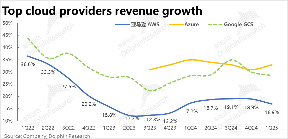 根据一些调研,AWS 似乎在获取高性能 GPU 以及新数据中心/算力的供给上,相比 Azure 有更明显的瓶颈,因此限制了 AI 需求的释放(而传统需求又不好),这或许是 AWS 增长未能提速的原因之一。