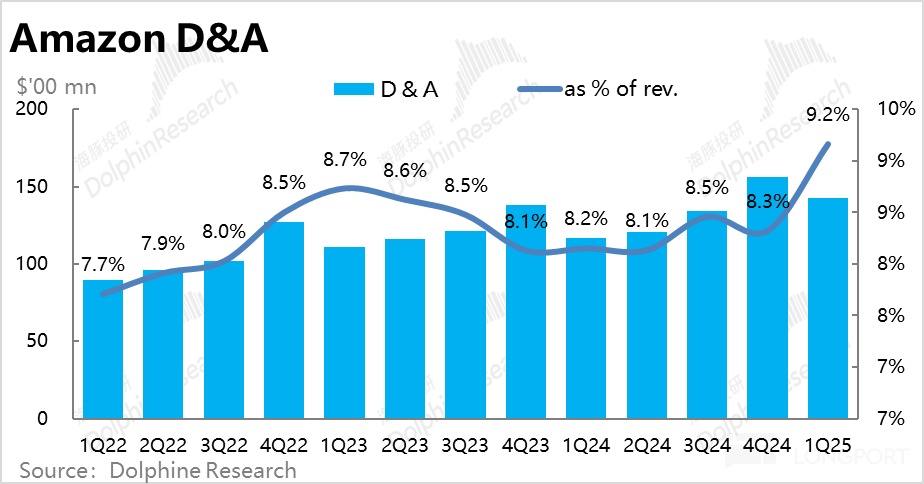 实际情况下,本季折旧占总营收的比重也确实环比提升了 0.9pct 到 9.2%,拖累确实加大了。但 AWS 的利润率却是明显走高,需要关注管理层解释是何原因,有没有一次性利好因素的影响。