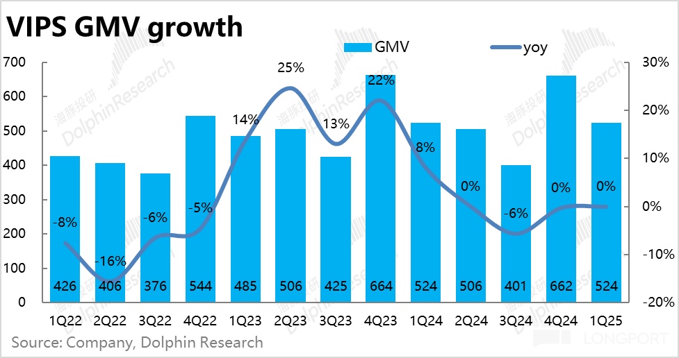 2、核心经营指标上,本季度唯品会 GMV 同比近乎持平,相比市场预期的负增长 0.9%,算是略超预期。守住核心业务指标没有下滑,可谓是本次业绩的 “出彩” 之处了。