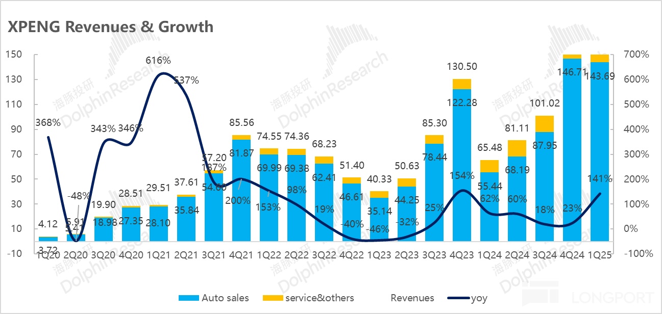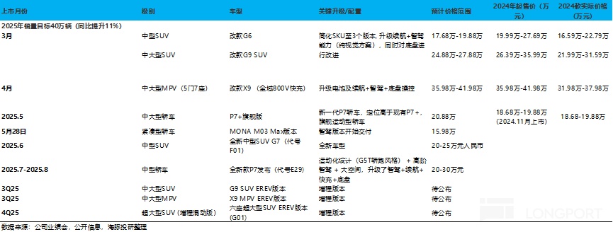 从小鹏 2025 年的产品周期来看,二季度末还有 Mona M03 智驾版本及中型 SUV 上市,预计开始放量都要集中在三季度,同时三季度及之后还有 4 款车型待发(三款增程 + 一款全新款 P7 发布),新品周期非常强劲,所以三季度及之后销量继续环比回升的确定性非常强。