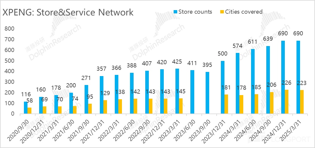 小鹏这个季度小鹏门店数和上季度基本环比持平(690 家),但覆盖城市数少了 3 家,可以看到小鹏应该还在做渠道变革。