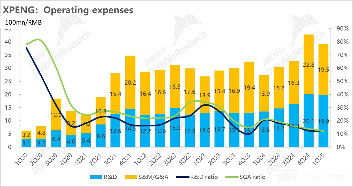 从这个季度的情况来看,小鹏的研发费用达到 19.8 亿,略超市场预期 18.6 亿。