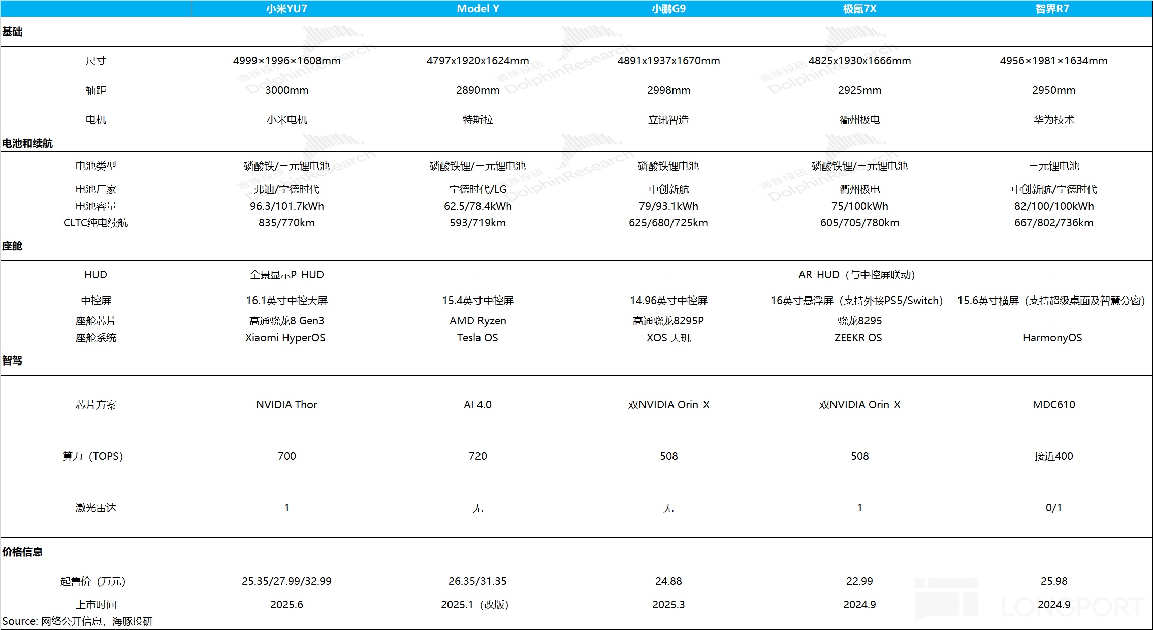 本次雷军座谈会,主要是对近期发布的 YU7 进一步信息补充。其中海豚君认为值得关注的信息点,如下有: