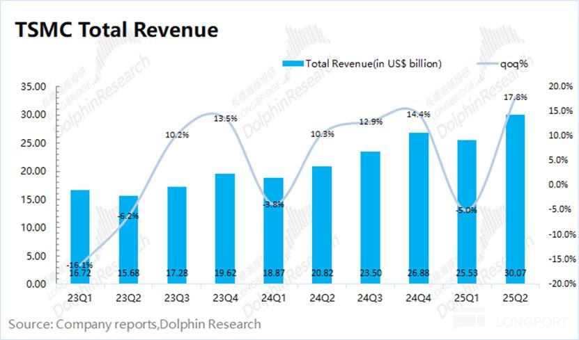 $台积电(TSM.US) 于北京时间 2025 年 7 月 17 日下午的美股盘前发布了 2025 年第二季度财报(截止 2025 年 6 月),要点如下: