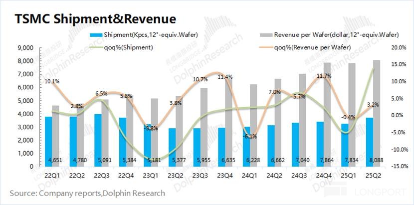 海豚君从量和价的维度,来观察台积电本季度收入增长的主要推动力: