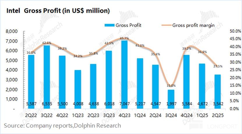 1.2 毛利及毛利率:英特尔在 2025 年第二季度实现毛利 35.4 亿美元,同比下滑 22.1%。