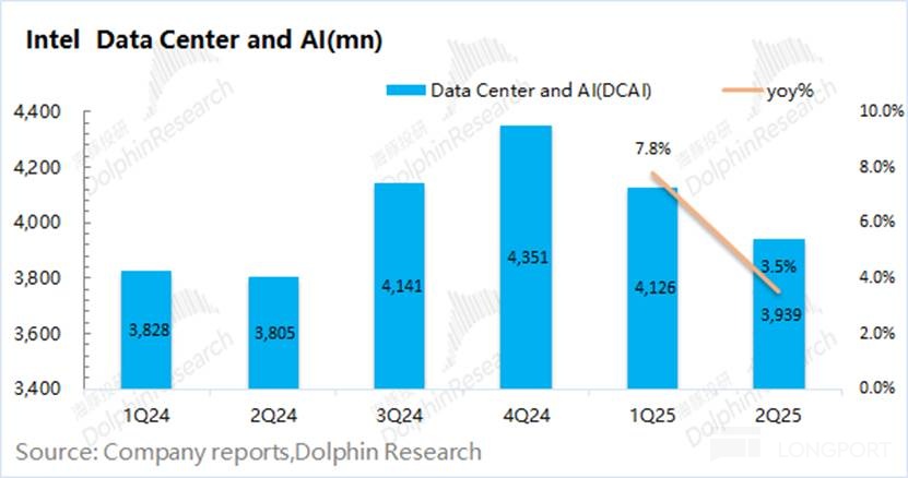 英特尔的数据中心及 AI 收入在 2025 年第二季度实现 41.26 亿美元,同比增长 3.5%,增长得益于 Xeon6 处理器的销售带动和部分客户为潜在关税的提前备货。