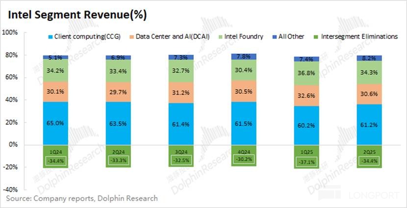 3、业务情况:在英特尔调整策略后,再次梳理了业务披露口径。当前公司最主要收入仍来自于客户端业务和数据中心及 AI,两者收入占比达到 90% 以上。