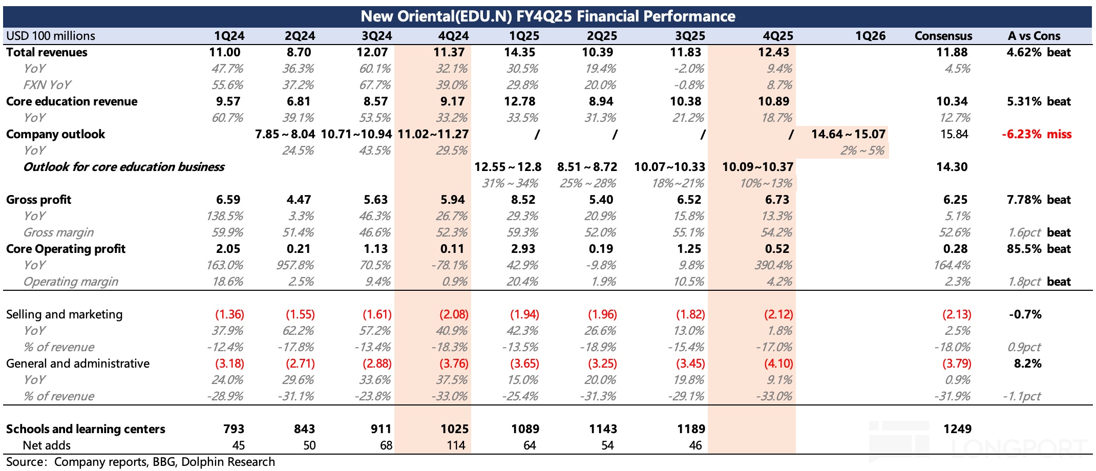 旅游相关业务板块:包括针对 K-12 学生和大学生的游学、研学营,以及针对中老年人群的旅游服务。该业务线在 2025 财年第四季度营收同比增长约 71%。
