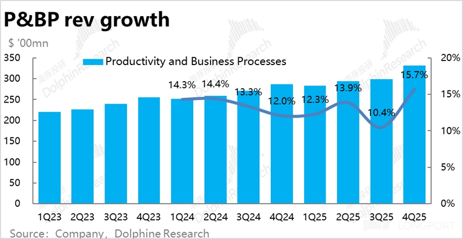 生产力板块中的其他细分业务,本季的增速也都较上季由明显提升(其中汇率因素大约贡献了 2pct~3pct 的提速)。