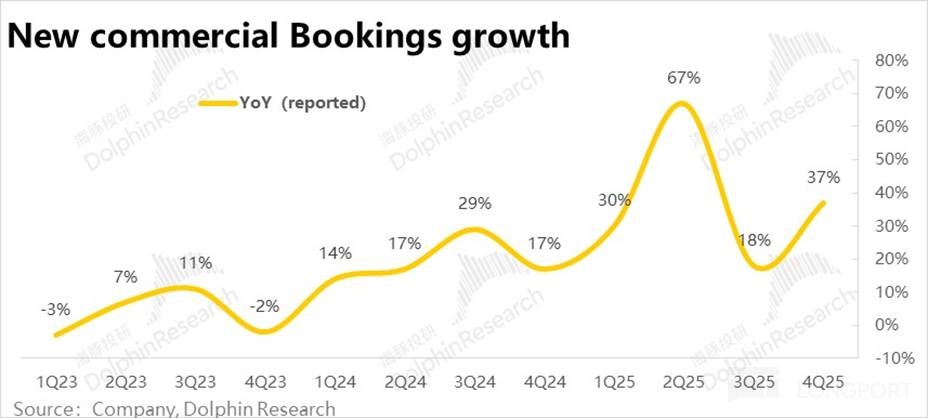 新签订的企业合同金额同比跳增 37%(恒定汇率下 30%),相比上季(不足 20%)大幅拉高。