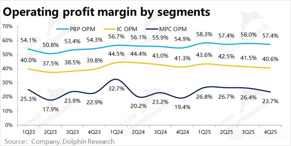 7、后续指引: 大数上,公司对下一季度总营收和经营利润的指引,按中值隐含同比增速分别为 14.7% 和 14.9%。两者相比本季的增速都有明显的收窄,与上上季度 F3Q25 时的情况接近,也暗示着经营利润率会大体持平。