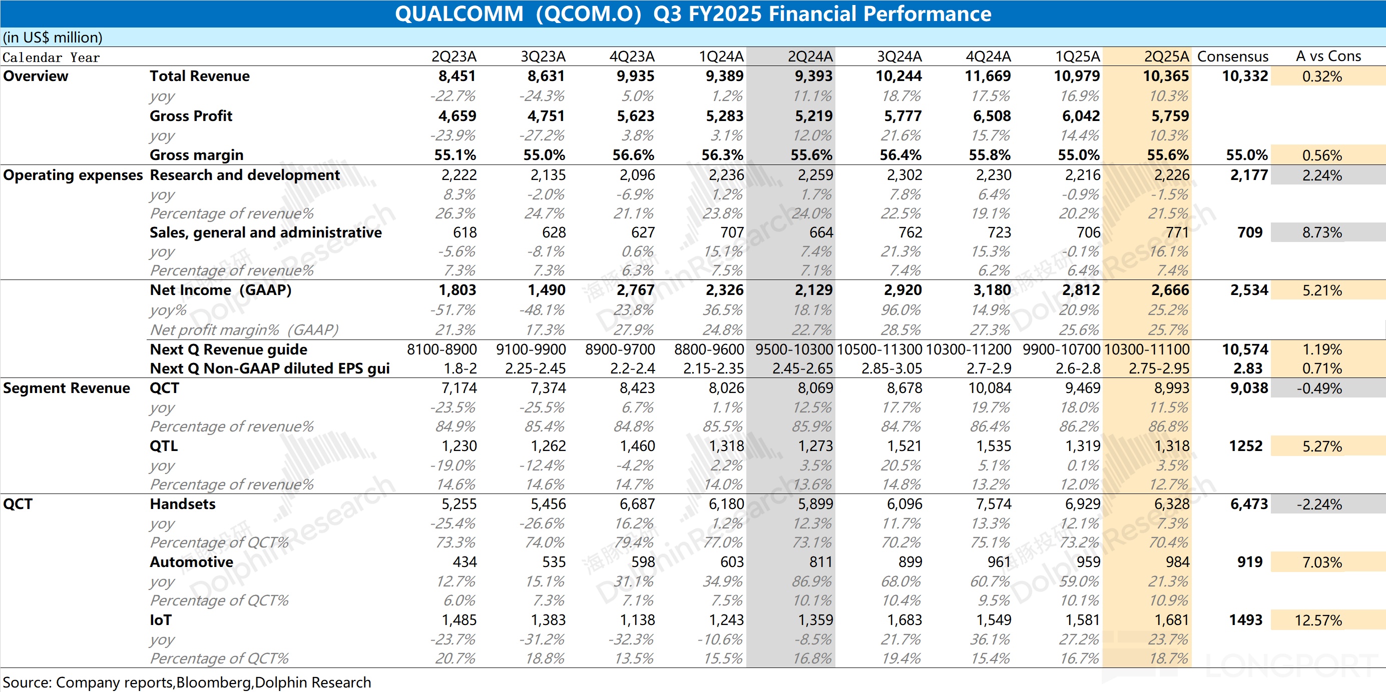 以下是海豚君关于本次高通财报的具体数据及图表