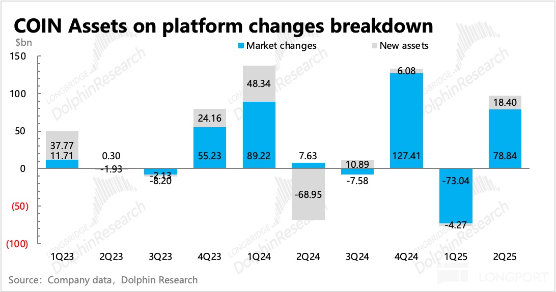 这里的原因在于,二季度 AOP 增量的 80% 主要靠的是资产增值而非新增入金。再进一步拆分看,比特币贡献了大头,占比从上季度的 66% 提升到了 70%。