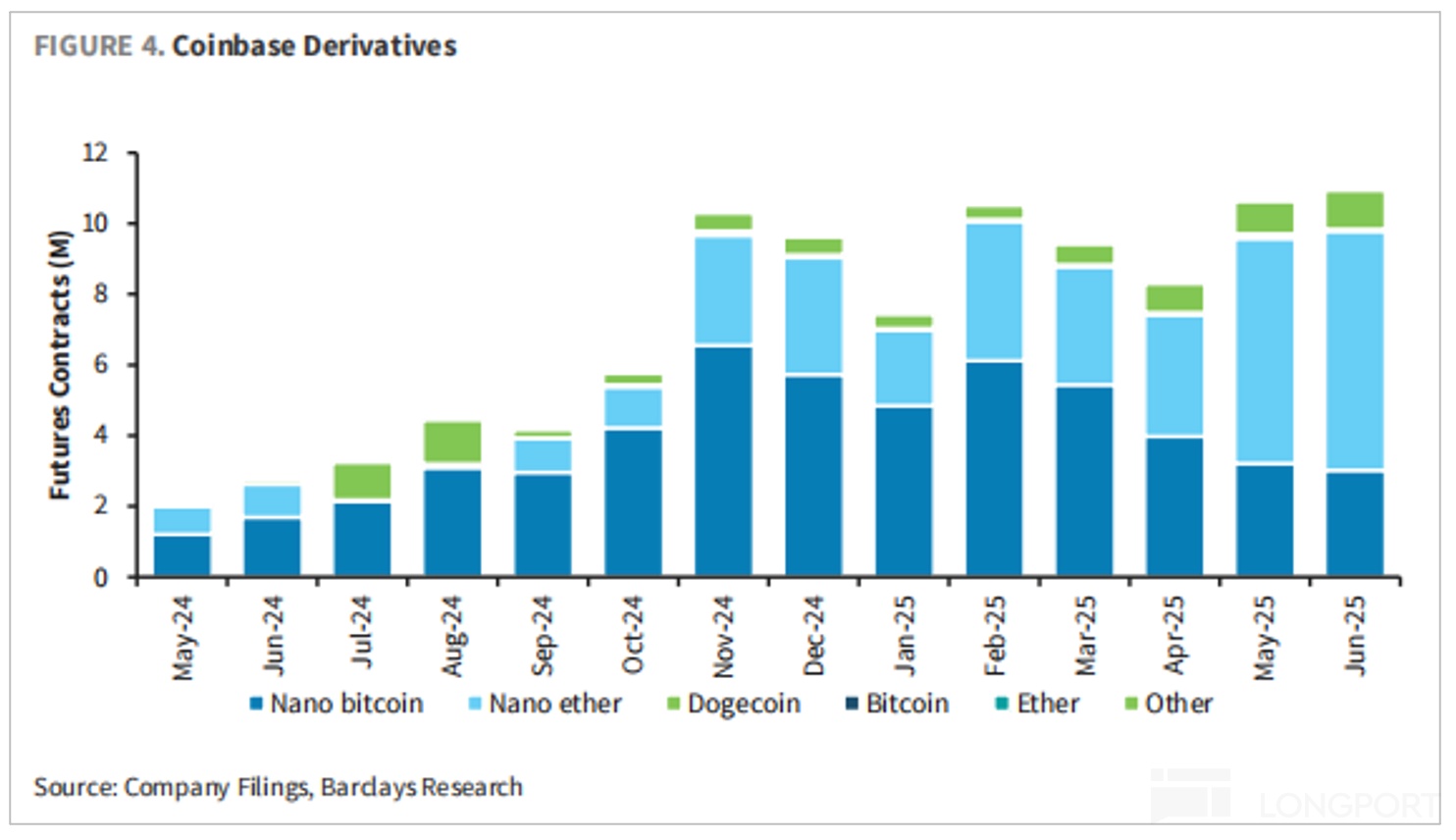 单看 Coinbase 目前的衍生品交易情况,还在早期渗透,增势主要看自身的渗透节奏。年初宣布收购的 Deribit,还未并表,可能需要等到年底完成交易后。