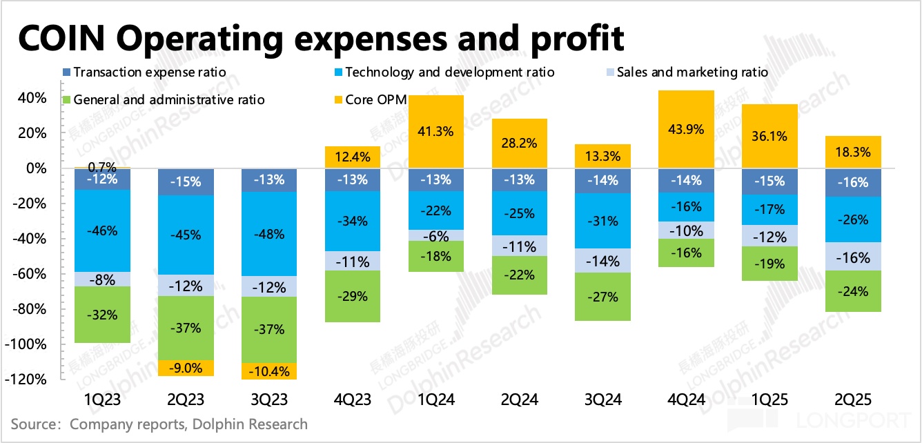 反而是交易降温先给业绩压力。二季度加密货币交易量环比下降 26%,投机情绪尚未恢复。除此之外,质押和稳定币收入也未及时扛起大旗,均或多或少的不及预期。刚性费用下,收入一承压,利润就基本不用看了。