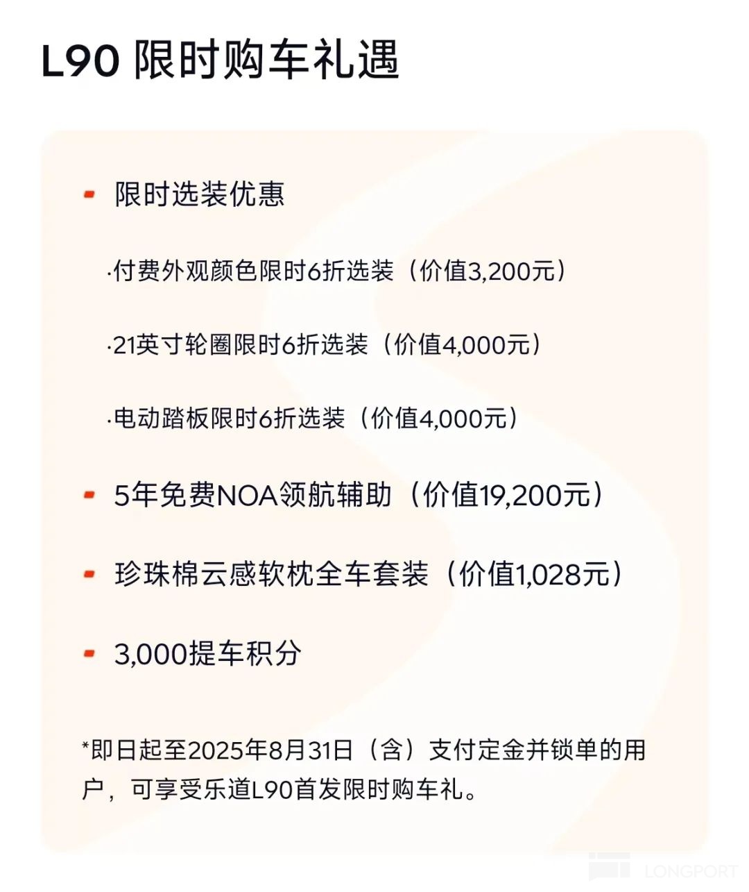 4)交付时间:6 座版本全系交付时间 2025 年 8 月 1 日,7 座版本全系交付时间 2025 年 9 月下旬;