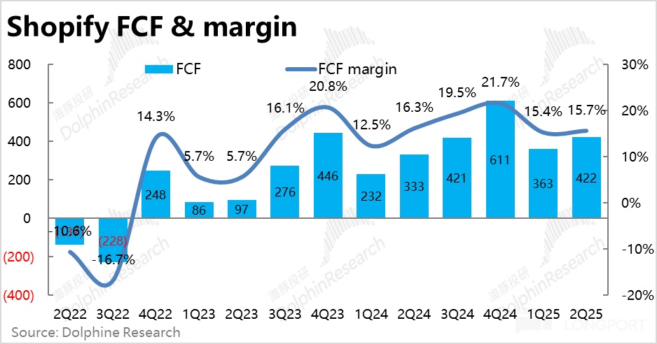 本季经营费用整体支出约$11.1 亿,和市场预期大体一致。不过趋势上,相比过去数个季度费用支出同比下滑或近小幅增加,本季度费用同比大增近 26%,暗示着 Shopify 可以要重入投入扩张周期。