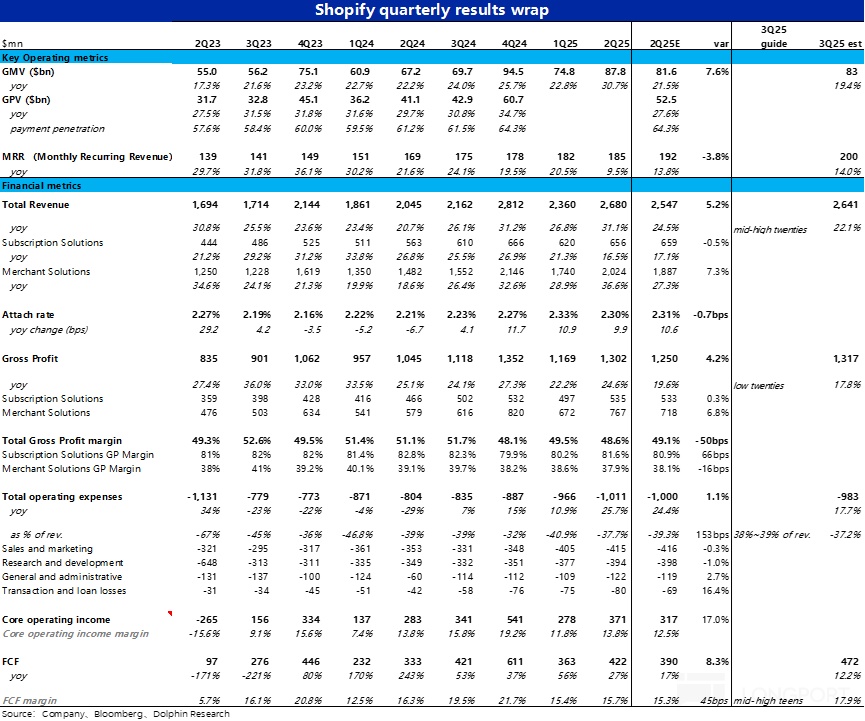 以下是海豚投研整理的$Shopify (SHOP.US) FY25Q2 财报电话会纪要,财报解读请移步《Shopify: 只要增长炸裂,其他问题就不是问题》