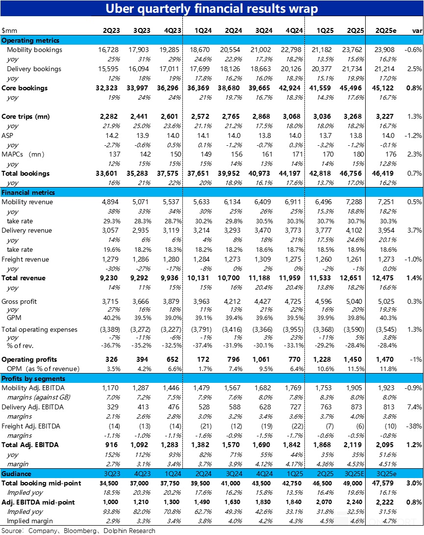 以下是海豚投研整理的$优步(UBER.US) FY25 Q2 的财报电话会纪要,财报解读请移步《打车弱、外卖强,Uber 又到十字路口?》