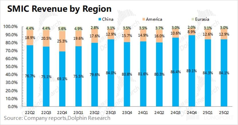 中芯国际本季度在中国区的收入为 18.6 亿美元,环比下滑 1.9%。即使在国补政策的助力下,国内下游市场依然不温不火,公司对于下半年的经营面展望也是信心不足。