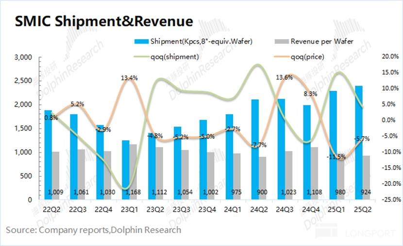 1)量的维度,中芯国际本季晶圆付运量(等效 8 寸)达到2390 千片,环比增长 4.3%;