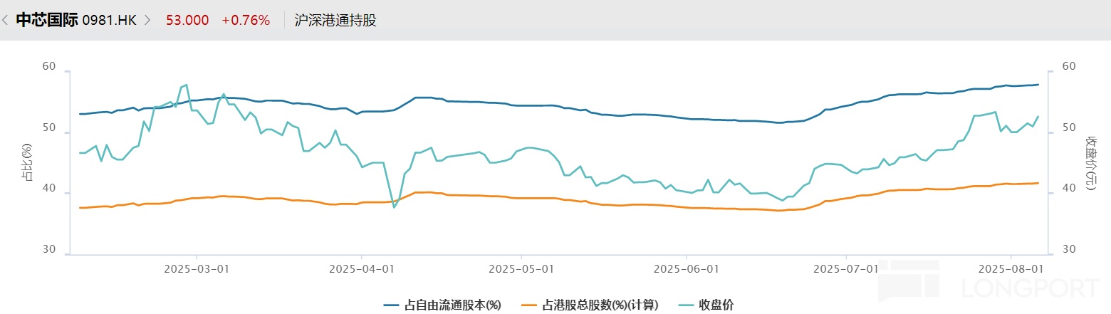 c)南向资金的情况:充分体现内资定价的属性。如果将中芯国际(港股股价)和南向持股占比放在一起,能清楚地看到两者走势的相关性。随着近期南向持股占比再次走高,中芯国际的股价也迎来提升。