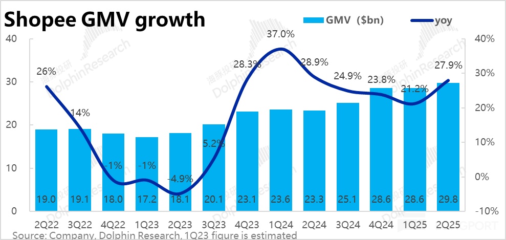 1、GMV 炸裂增长,最大亮点:最关键板块的最关键指标—Shopee GMV 本季同比大增 28%,较上季显著提速余约 7pct。