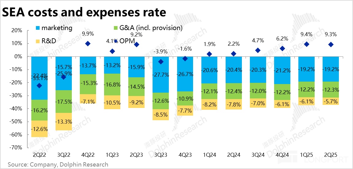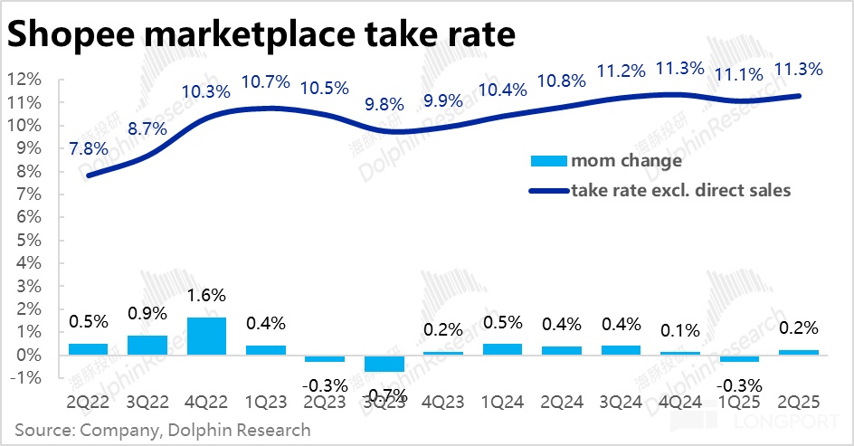营收和变现上,由于近期 Shopee,包括 Lazada 和 TikTok Shop 等主要平台仍在多国轮动式提升变现率。本季体现在财报上的,Shopee 平台型业务变现率达到了 11.3%(同比提升 0.5pct,不过提升幅度开始缩窄)。