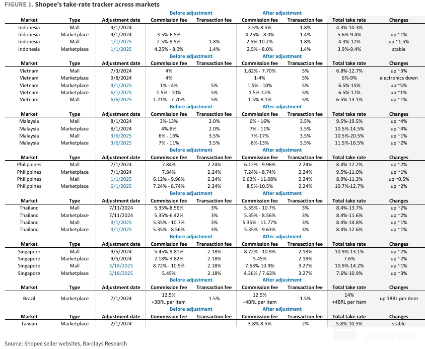 2、东南亚电商继续携手提变现:本季度Shopee、Lazada 和 TikTok Shop 等主要平台继续携手在东南亚国家轮动式提高变现率。反映到财报上,本季 Shopee 平台业务变现率达到了 11.3,同比提升 0.5pct(不过提升幅度开始缩窄)。