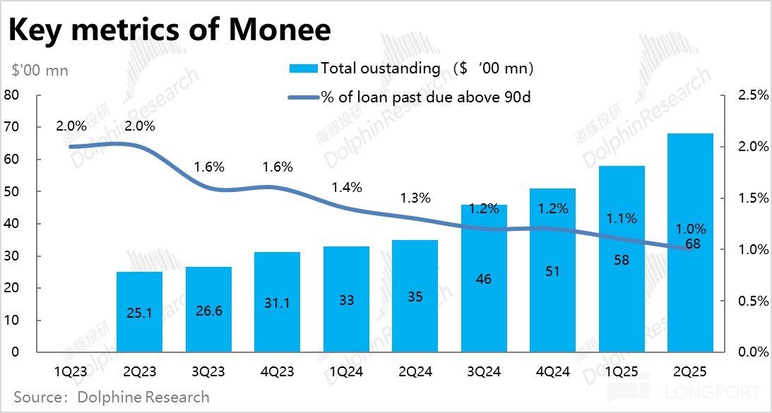 背后是包括表内、表外的贷款余额总值本季环比净增额达到$10 亿,相比前两个季度的$5 亿和$7 亿,连续加速增长。结合一些调研,Monee 已大体完成了对 Sea 生态内用户的渗透,正破圈向企业用户和生态外的消费者用户拓展。从本季业绩看,进展应当不错。
