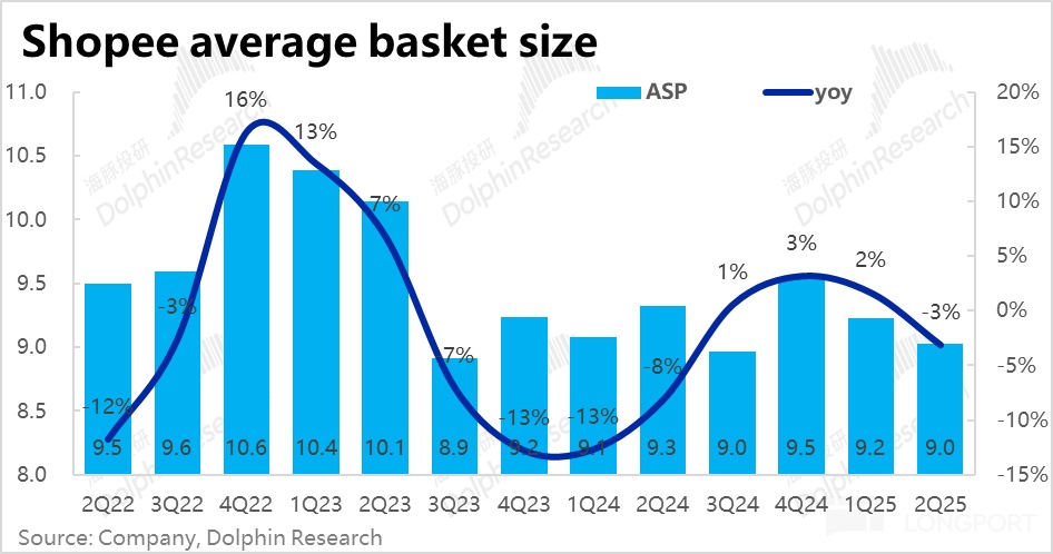 并且本季 GMV 的强劲增长,完全由更 “健康” 的单量增长驱动(同比增速 32%),客单价则是小幅下跌的(同比约-3%),背后可能意味着稍微增加的折扣力度,或者平台的用户和产品结构再进一步下沉。