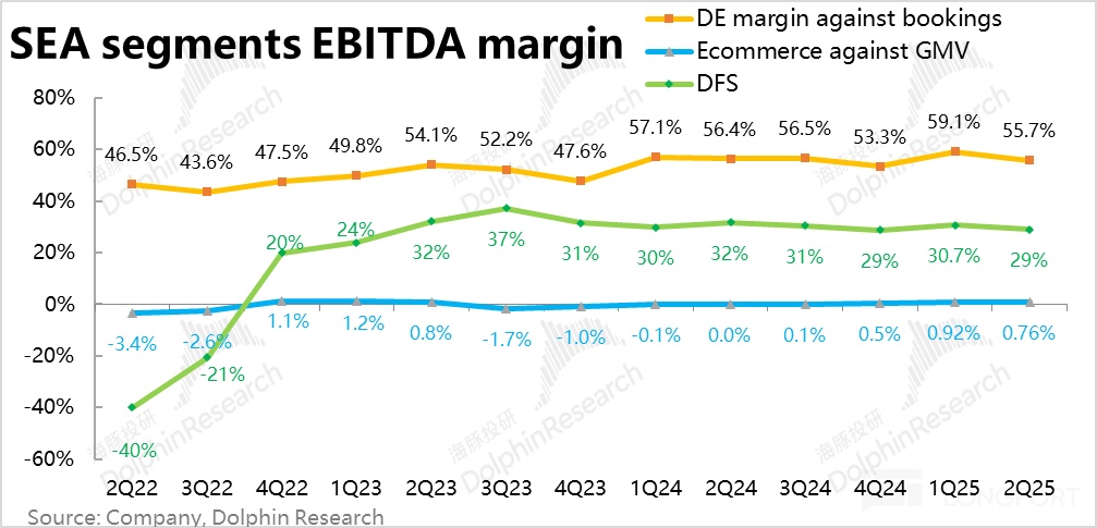 至于金融业务同样因坏账计提的增加,和向生态外拓展获客成本的增加,EBITDA 占收入的比重也环比从 30.7% 下滑到了 28.9%。