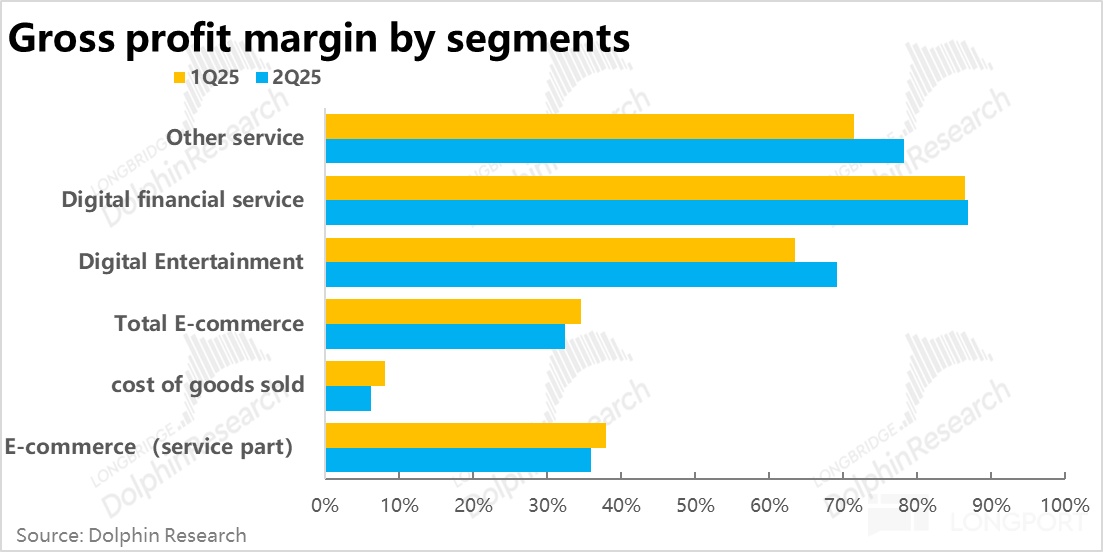 且分板块看,要么因物流投入影响,要么因营销支出增加,各业务板块的利润率本季是全面下滑。