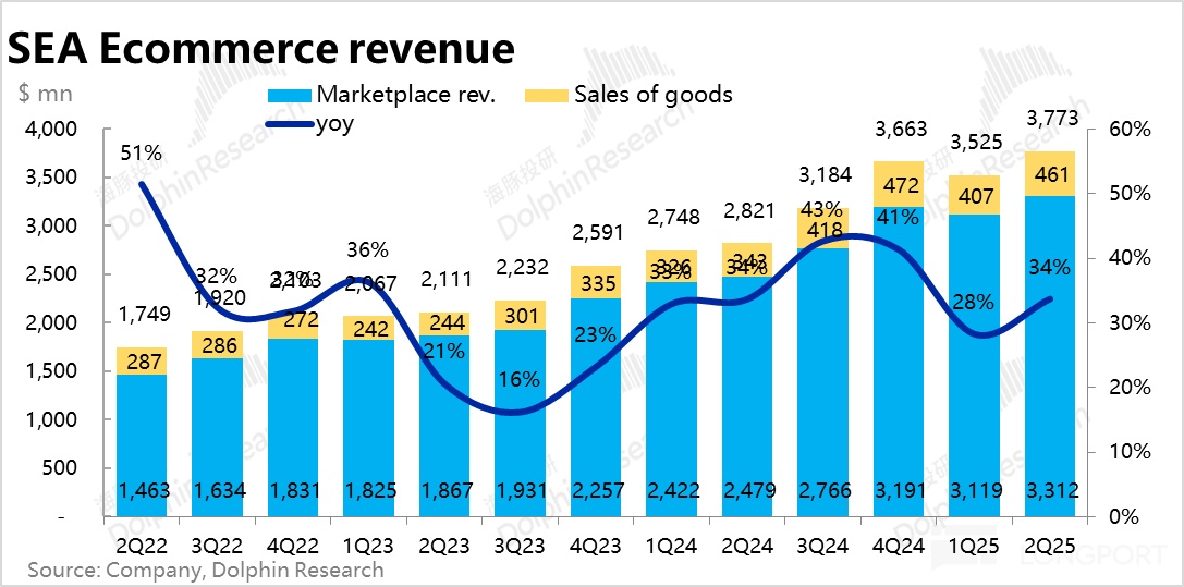 叠加强劲的 GMV 增长,本季 Shopee 营收同比大增 34%,环比明显提速,且远超市场预期的 28%。