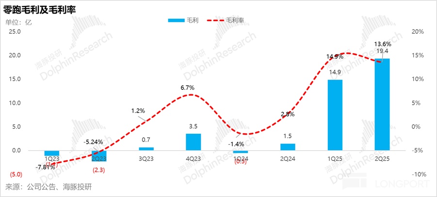 本季度零跑毛利率 13.6%,超市场预期 12%,主要由于规模效应释放,以及公司持续的强降本能力。如果去除上季度一汽的技术授权收入的确认影响,本季度毛利率仍然在环比上升。
