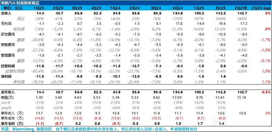 $零跑汽车(09863.HK) 于北京时间 8 月 18 日港股盘后发布了 2025 年第二季度财报。本次财报仍然表现亮眼,已经连续三个季度 beat 市场预期。具体来看: